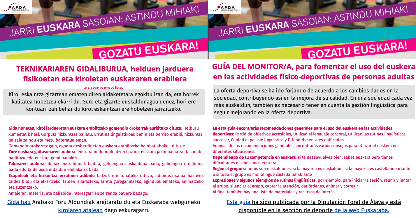 Ver imagen más grande GUÍA DEL MONITOR/A, para fomentar el uso del euskera en las actividades físico-deportivas de personas adultas Mikel LL2 de octubre de 2025| Información Compartir en redes sociales / Sare sozialetan partekatu FacebookXRedditLinkedInWhatsAppTumblrPinterestCorreo electrónico